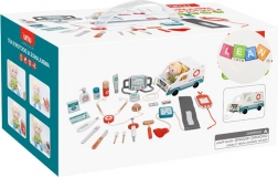 Permettete ai bambini di diventare eroi con un realistico set di salvataggio. Questo giocattolo in legno comprende attrezzature mediche come un defibrillatore, uno sfigmomanometro, uno stetoscopio e un'ambulanza, portando il gioco a un livello di realismo superiore.
