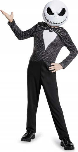 Questo costume per bambini di Jack Skellington trasforma ogni piccolo fan nel re di Halloween Town. La tuta nera di qualità con righe bianche imita l’elegante abito di Jack, l’iconico papillon‑pipistrello aggiunge carattere e la maschera con il sorriso cucito completa il look perfetto.