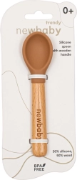 Il cucchiaio della linea New Baby Trendy offre un'elegante combinazione di legno e silicone, garantendo una nutrizione facile e sicura per i più piccoli.
