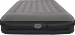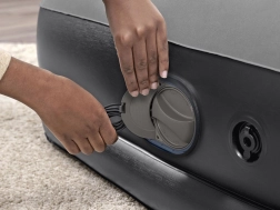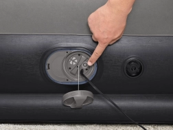 La pompa USB integrata gonfia il letto in 5–6 minuti ed è compatibile con adattatori AC/DC e power bank – ideale quando sei in viaggio. Il cuscino integrato e la piacevole superficie a coste aumentano il comfort del sonno; le dimensioni 152 × 203 cm ospitano comodamente due adulti.