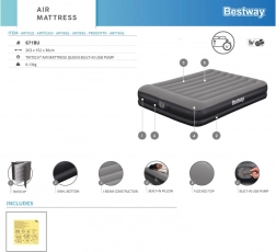 Il confortevole materasso matrimoniale Bestway con dimensioni 152 × 203 × 36 cm offre gonfiaggio rapido con pompa USB integrata in 5–6 minuti, struttura Tritech stabile resistente alla dilatazione, cuscino integrato per maggiore comfort e portata max 300 kg. Perfetto per la casa e per il campeggio.