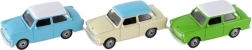 L'iconico modello dell'auto Trabant del marchio Welly in scala 1:60 farà felici piccoli e grandi collezionisti. Struttura in metallo, porte apribili, interni dettagliati e ruote libere garantiscono un'ottima esperienza di gioco e di esposizione. Lunghezza circa 7 cm, assortimento di colori, adatto dai 3 anni.