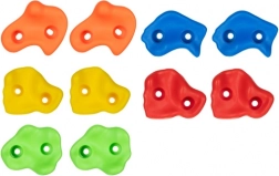 Nella confezione trovi 10 prese, 2 maniglie ergonomiche e un kit di montaggio completo: ideale per strutture da gioco interne ed esterne.
