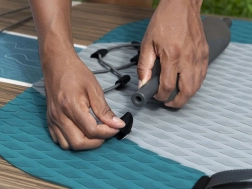 - 2in1 – SUP e kayak: sedile applicabile con schienale e poggiapiedi per pagaiata confortevole da seduto.
