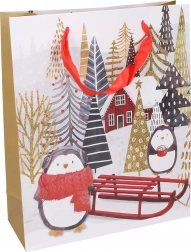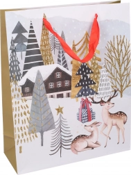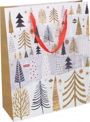 Scegli tra 4 diversi motivi natalizi che esaltano l’atmosfera delle feste. La borsa fa risparmiare tempo e stress: niente tagli di carta né colla. Basta inserire il regalo, eventualmente aggiungere carta velina, ed è fatta.