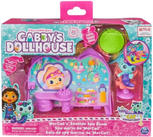 Esplora nuove possibilità di gioco con la Stanza termale di Pescelina dalla casa magica di Gabina. Questo set include una bellissima figurina di Pescelina alta quasi 5 cm e la sua amata vasca da bagno con bolle. Dopo il bagno, Pescelina può rilassarsi sulla poltrona termale girevole.