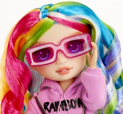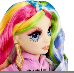 Amaya Raine incanta con i suoi vistosi capelli arcobaleno, una felpa con la scritta RAINBOW e una gonna lucida. Grazie alle articolazioni snodabili posa alla grande e diverte.