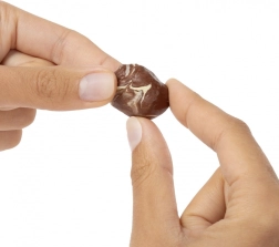 Apri la sfera, mescola gli ingredienti, versa, decora e poi lascia indurire alla luce UV: otterrai una mini prelibatezza permanente.