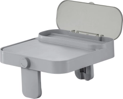 - 4 funzioni in 1: tavolino, vano resistente agli schizzi, gancio per asciugamani, supporto per tablet