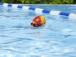Il design bicolore vivace aumenta la visibilità del bambino in piscina e aggiunge stile a ogni allenamento.