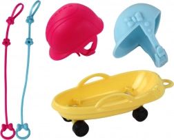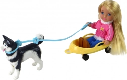 Il tenero cane husky con slittino/carrellino giallo e i caschi per un gioco sicuro incoraggiano la cura, la creatività e il role-play.