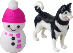 Il set include anche una piccola bambola, un allegro pupazzo di neve, un cagnolino husky al guinzaglio e uno slittino/carrellino giallo per il cane. Per le corse d’azione c’è una motoslitta da neve viola, dettagliata e dal design invernale. Due caschi assicurano un gioco sicuro e gli accessori favoriscono lo sviluppo dell’immaginazione e della motricità fine.
