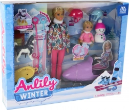 Questo ricco set offre ai bambini ore di gioco di fantasia e storie invernali. La bambola principale, con lunghi capelli biondi, indossa una giacca invernale colorata, pantaloni rosa e pattini, pronta sia per la pista di ghiaccio che per il divertimento sulla neve. Le estremità mobili consentono pose realistiche e una facile creazione di scene.