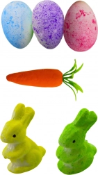Decorazioni pasquali nel cestino sono perfette per composizioni primaverili. Questo set include varie decorazioni in polistirolo leggero e resistente che completano splendidamente qualsiasi interno. I suoi colori pastello sottolineano l'atmosfera gioiosa delle festività e i dettagli accurati assicurano un aspetto elegante.