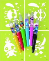 - 6 pennarelli a soffio, stencil con motivi Lilo & Stitch