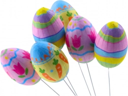 Le uova sono dotate di fili che permettono di posizionarle facilmente in varie decorazioni come composizioni floreali o ghirlande.