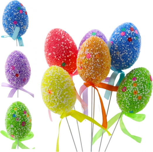 Ogni uovo è decorato con perline di schiuma e motivi delicati per un aspetto unico.