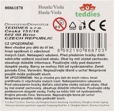Dettagli decorativi, piroli di accordatura e corde imitano un vero violino, per invogliare i bambini a provare le prime melodie.