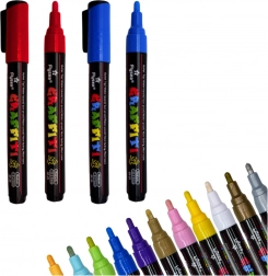 Set di pennarelli acrilici - 12 pezziQuesto set di pennarelli acrilici è lo strumento ideale per artisti, appassionati e persone creative che desiderano dare ai propri progetti un aspetto unico e colori intensi. Combina alta qualità, durata e versatilità. Perfetto sia per l’uso professionale che per il divertimento creativo a casa. I loro colori intensi e duraturi consentono di creare opere d’arte straordinarie su diverse superfici. Che tu stia disegnando su carta, legno, tessuto, vetro, ceramica, cartone, pietra, metallo o plastica, i pennarelli acrilici garantiscono un’adesione ottimale dell’inchiostro e una profondità cromatica eccezionale.