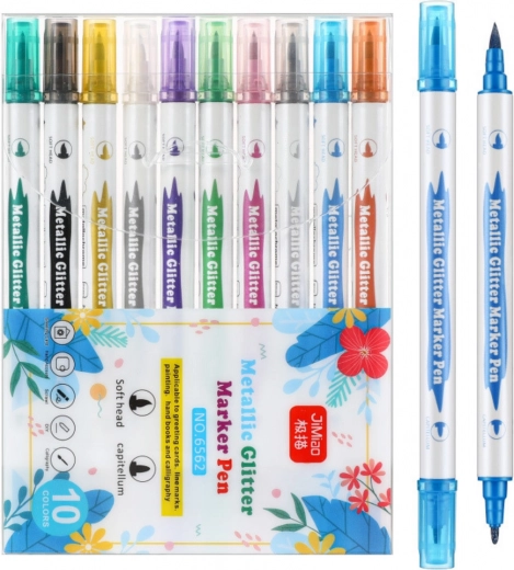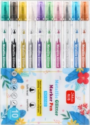Set di pennarelli metallici a doppia punta con glitter, 10 pz