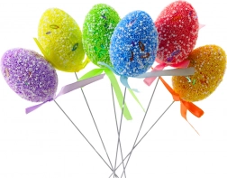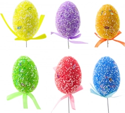 Uova di Pasqua su stecco con fiocchetto, set colorato da 6 pz