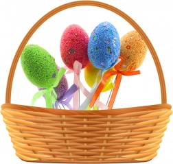 Pallini di polistirene e piccoli motivi, fiocchetto in tinta con l’uovo