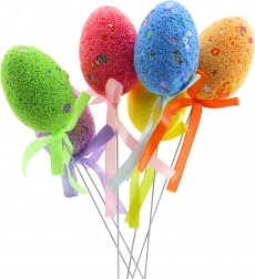 Uova di Pasqua su stecco con fiocchetto, decorazione colorata, 6 pezzi