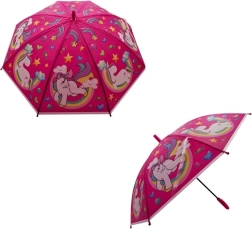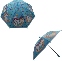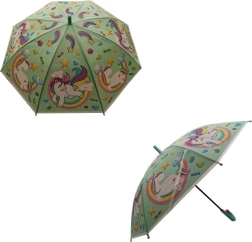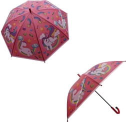Il grazioso ombrello per bambini con motivo unicorno protegge i più piccoli dalla pioggia e allo stesso tempo li conquista con un design giocoso. Grazie al meccanismo a scatto si apre rapidamente, la robusta struttura in acciaio assicura stabilità e l’impugnatura in plastica offre una presa comoda anche per mani piccole.