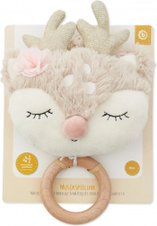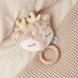 La cerbiatta Ella di Bieco è un delicato giocattolo musicale da appendere, pensato per calmare e favorire un addormentamento sereno. Tirando il raffinato anello in legno si attiva la classica Ninnananna di Brahms, che trasmette sicurezza e tranquillità.