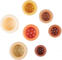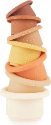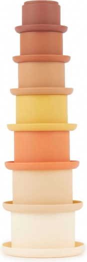 Il set di bicchieri impilabili in silicone Bieco, in piacevoli tonalità terrose, offre infinite possibilità di gioco in casa e all’aperto. I bambini possono costruire torri, travasare l’acqua o giocare con la sabbia: il materiale sicuro e resistente affronta le avventure quotidiane e si pulisce facilmente con acqua e sapone delicato.