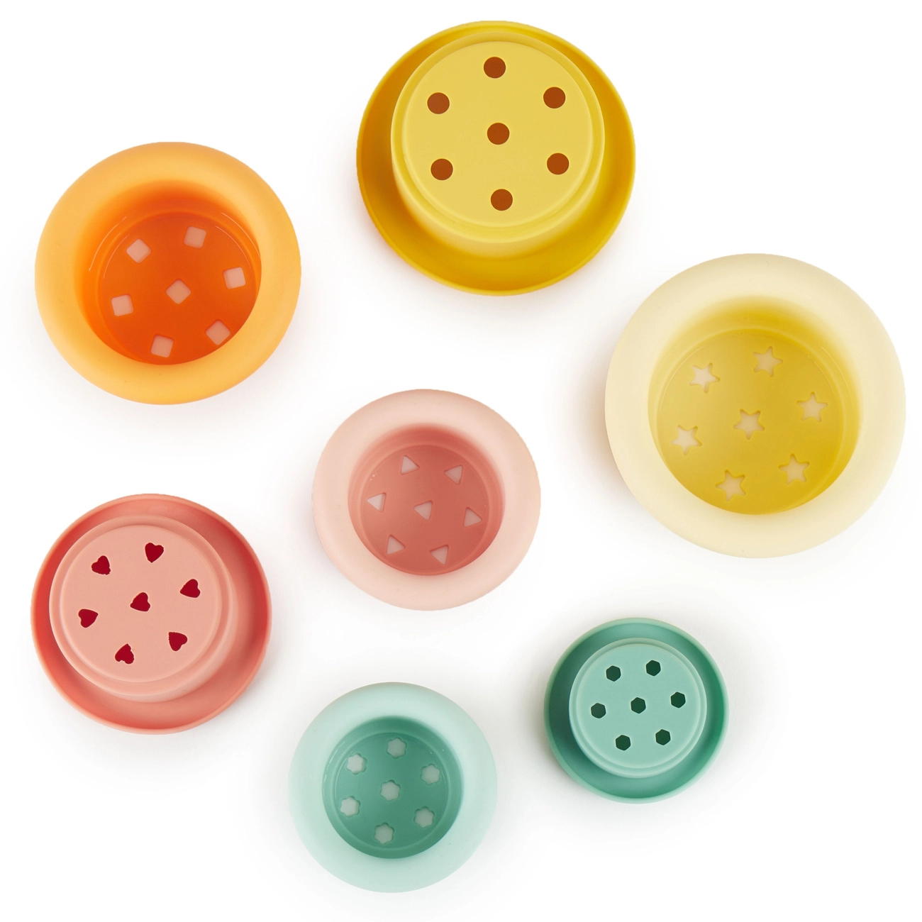Set impilabile di sette bicchieri in 100% silicone. Questo gioco è progettato per migliorare la coordinazione e la motricità fine dei bambini. Realizzati in silicone resistente e sicuro, questi bicchieri sono ideali sia per l’uso interno che esterno. Inoltre, la manutenzione è molto semplice: basta lavarli con acqua e sapone delicato.