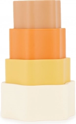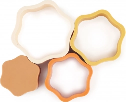 Questo set impilabile a forma di fiore da 4 pezzi è realizzato in silicone alimentare 100%, morbido al tatto, sicuro per i bambini e al tempo stesso molto resistente. Impilare e ordinare i singoli elementi sviluppa la coordinazione occhio–mano, la motricità fine e il pensiero logico.
