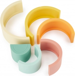 L’arcobaleno impilabile in silicone BIECO Tropical Vibes offre ai bambini un gioco creativo e sicuro. Il materiale morbido ma robusto, in silicone 100%, è piacevole al tatto, durevole e semplice da mantenere: bastano acqua e sapone delicato. I colori pastello invogliano a impilare, ordinare e svolgere attività di equilibrio.