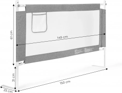 La spondina di sicurezza per letto larga 150 cm di ECOTOYS protegge i bambini dalla caduta e consente ai genitori un comodo co-sleeping. Offre altezza regolabile, maniglia superiore ribaltabile per un facile accesso, rete traspirante e tasca pratica per piccoli oggetti. Montaggio universale, possibilità di collegare più sponde e robusta struttura in acciaio garantiscono lunga durata e massima sicurezza.