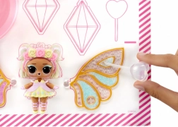 L.O.L. Surprise introduce un modo tutto nuovo di giocare e creare. Mescola la “polvere delle fate” colorata con l’acqua, riempi lo stencil delle ali e, una volta asciutte, fissale alla bambola. Grazie alle ali magiche e agli effetti scintillanti otterrai un design originale che farà risaltare la tua fata. La sfera funge anche da elegante base espositiva.