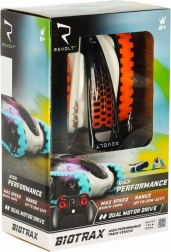 REVOLT BIOTRAX è un mini modello cingolato fuoristrada che se la cava su superfici diverse, dal tappeto al prato. Il corpo in plastica robusta e i cingoli in gomma garantiscono eccellente aderenza e resistenza, mentre gli effetti LED esaltano ogni acrobazia e la guida notturna.
