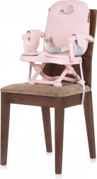 Seggiolina booster CHIPOLINO Lollipop flamingo, leggera e compatta, per bambini che siedono da soli fino a 3 anni e 15 kg. Offre cinture di sicurezza, vassoio in plastica removibile, facile pulizia e regolazione in altezza su 3 posizioni. Grazie alle cinghie di fissaggio si applica facilmente e in sicurezza alla maggior parte delle sedie da cucina.