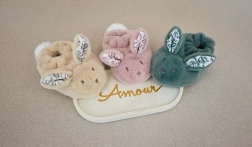 Offri al tuo bambino una sensazione di calma e sicurezza con questo set, che comprende non solo un coniglio in peluche con un elegante fiocco, ma anche scarpine con stampa di orecchie di coniglio e viso ricamato.