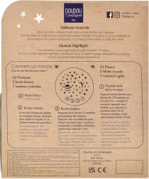 Il coniglietto è non solo un ottimo compagno da coccolare, ma anche un accessorio funzionale per la cameretta. Le sue proiezioni a 7 colori e 10 melodie permettono di personalizzare l'esperienza secondo le esigenze individuali del tuo bambino. Grazie ai quattro pulsanti, puoi facilmente controllare il volume, le modalità di riproduzione e le proiezioni colorate.
