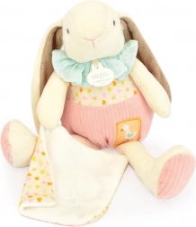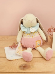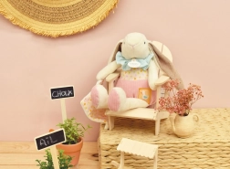 Il coniglietto con lunghe orecchie morbide e un vestito in velluto rosa è creato appositamente per i più piccoli.