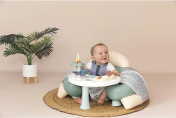 Morbida seduta gonfiabile con poggiatesta e braccioli che offre comfort e stabilità durante i primi tentativi di seduta autonoma.