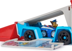 Preparatevi per la prossima grande missione di salvataggio con il Paw Patrol centro di comando mobile e l'auto da corsa di Chase! Questo set di gioco può trasformarsi e offre spazio di archiviazione e rampa di lancio.