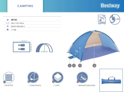 La tenda da spiaggia Bestway Beach Ground 2 è progettata per tutti coloro che vogliono godersi una giornata in spiaggia senza l'intensa esposizione al sole. Offre una soluzione semplice che fornisce ombra durante le calde giornate estive e un posto adatto per riporre tutti gli accessori da spiaggia.