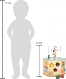 Questo robusto cubo attività in legno, nei delicati toni naturali e pastello con animaletti del safari, offre un ricco ventaglio di attività per il divertimento e lo sviluppo delle abilità. I bambini possono esplorare il labirinto di perline, spostare gli elementi sulle piste, ordinare le forme, suonare lo xilofono e allenare logica e concentrazione.