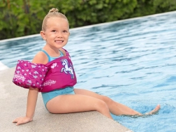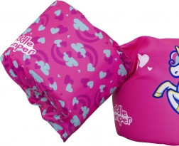 Il motivo rosa con unicorno, cuoricini e arcobaleno incoraggia i bambini a giocare in acqua e aumenta la loro sicurezza durante l’apprendimento del nuoto.