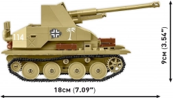 Goditi i cingoli funzionanti, le ruote girevoli e il cannone regolabile. Inoltre ottieni un cannone da campagna 5 cm Pak 38 separato per ampliare il gioco e l'esposizione con il tema EL ALAMEIN.