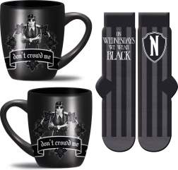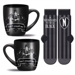 Cerchi un regalo originale per i fan di WEDNESDAY? Questo set pratico unisce comfort quotidiano e stile. La tazza in ceramica da 315 ml è ideale per caffè e tè e puoi metterla senza problemi sia in lavastoviglie che nel forno a microonde. I calzini morbidi in taglia universale 36–41 sono piacevoli da indossare e si adattano facilmente al piede.
