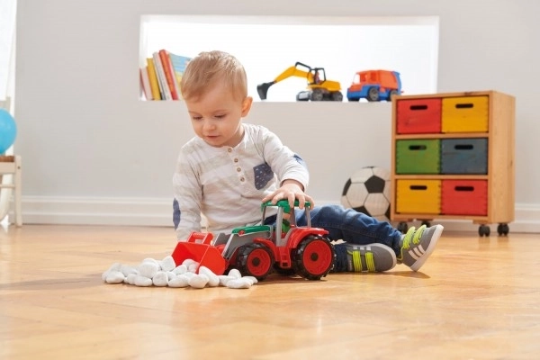 Scoprite il resistente trattore LENA TRUXX che stimola la fantasia e la motricità fine. Grazie alla benna anteriore i bambini raccolgono e travasano facilmente sabbia o mattoncini e si godono ore di gioco creativo. La cabina apribile con la figurina dell’autista aggiunge dettagli realistici e sostiene scenari di ruolo in fattoria e nel cantiere.