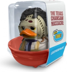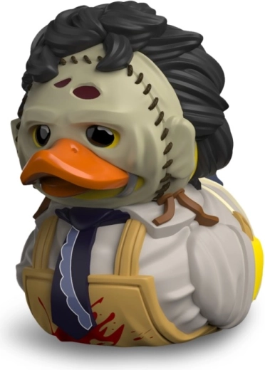 Questo bel pezzo fa parte della collezione Mini Tubbz, che presenta personaggi famosi in un'originale veste di anatroccoli di gomma. L'anatroccolo è progettato nello stile del personaggio Leatherface di Non aprite quella porta, con una maschera dettagliata e elementi tipici del costume. Perfetto come decorazione o un giocattolo coinvolgente per l'acqua: