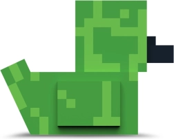 Questa papera presenta un distintivo design pixelato del Creeper dal popolare gioco Minecraft.